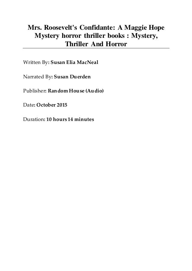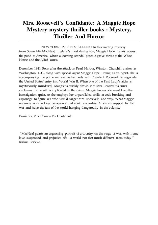Mrs Roosevelt S Confidante A Maggie Hope Mystery Horror Mystery