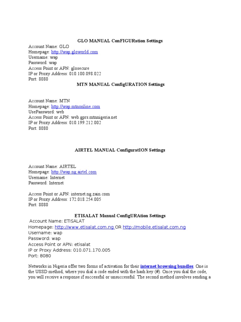 Manual Internet Configuration For Android Phone Mtn Glo Etisalat